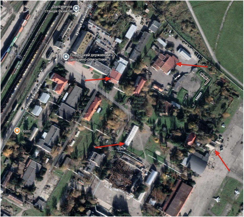 Предполагаемые места поражения «Орешником» объектов на Львовском государственном авиационно-ремонтном заводе