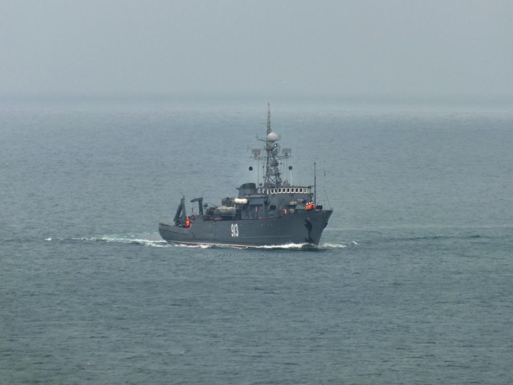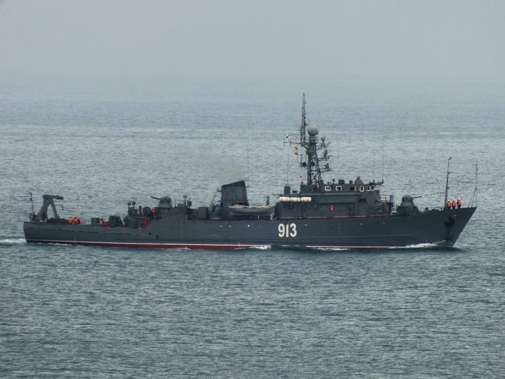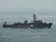 Морской тральщик “Ковровец” из состава 68-й бригады кораблей охраны водного района Черноморского флота отрабатывает задачи в полигонах боевой подготовки.