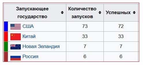 [5] Существуют данные и другой статистики, свидетельствующие, например, о том, что Россия совершила 17 запусков (как и Новая Зеландия).