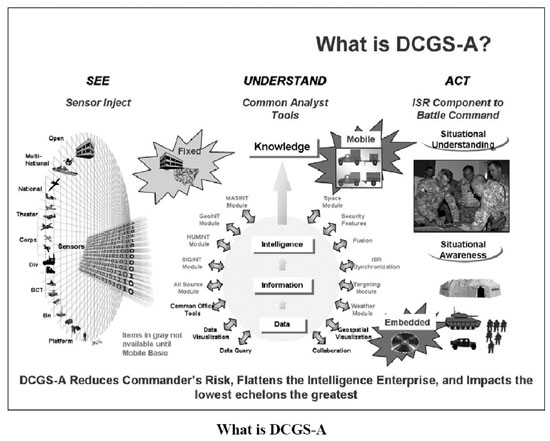 Можно привести пример того, как реализуется процесс принятия решений в военной области – от получения информации, ее оценки, «осознания», до принятия решения о том как, сколько и где использовать военной силы – в США и НАТО. Этот процесс информатизации и управления дает очевидные преимущества стороне, которая создала такую систему. Особенно, если речь идет (как в случае с США и НАТО) о заведомо слабом в технологическом отношении противнике. К сожалению, к такой категории стремительно движутся и ВС России. Как пишет бывший заместитель НГШ А. Рукшин, «Но разве можно сравнивать военные потенциалы США, коалиции государств НАТО и стран, подвергшихся их агрессии в конце XX – начале XXI века? Обладая большим количеством дальнобойного высокоточного оружия (ВТО), абсолютным превосходством в воздухе, на море, в космосе, в управлении (связь, навигация, разведка, РЭБ, АСУ), войска НАТО, воюя с армиями, имеющими устаревшие образцы вооружения и военной техники, легко могли реализовать на практике сетецентрические методы управления войсками (силами), наносить удары из зон вне досягаемости средств поражения обороняющихся почти без потерь своих войск (сил), наносить решающее поражение противнику, в короткие сроки резко снижать его моральный дух, поражать системы государственного и военного управления, объекты жизнедеятельности государств еще в мирное время и в короткие сроки завершать военную кампанию, приступая затем к постконфликтному урегулированию.