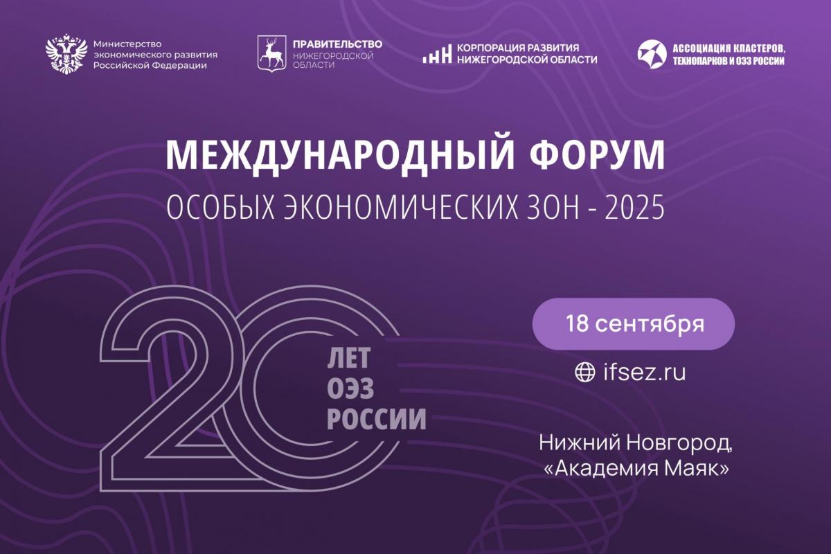 III Международный форум особых экономических зон (ОЭЗ-2025) пройдет 18 сентября в Нижнем Новгороде.