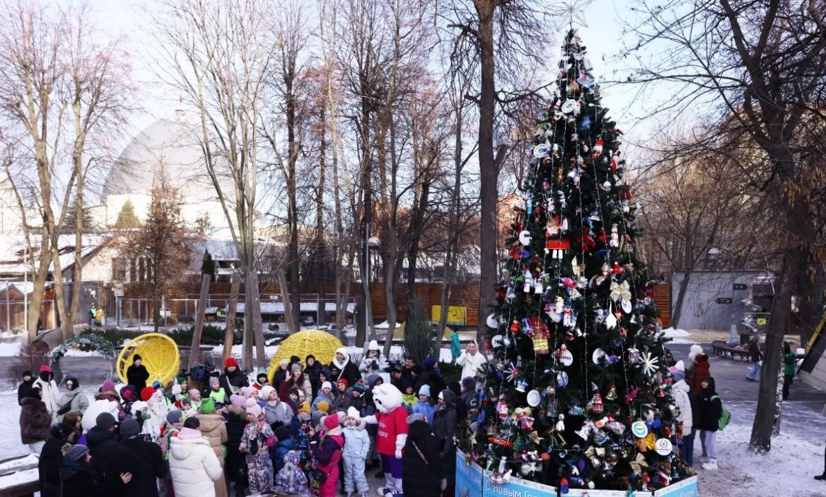 В этом году в Московском зоопарке экологическую елку страны украсили почти 10 тысяч новогодних игрушек, созданных детьми из всех уголков России в рамках премии Росприроднадзора «Экология – дело каждого».