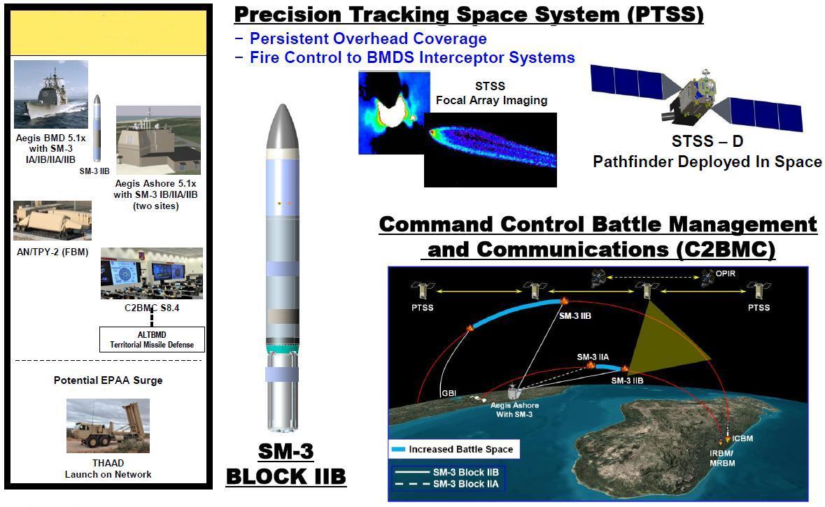 - создание точной космической системы обнаружения ракет под названием PTSS (требуется, так как не всегда оптимально местонахождения устройств слежения и обнаружения наземного и надводного типа на территории тех государств, которые разрешили их разместить);