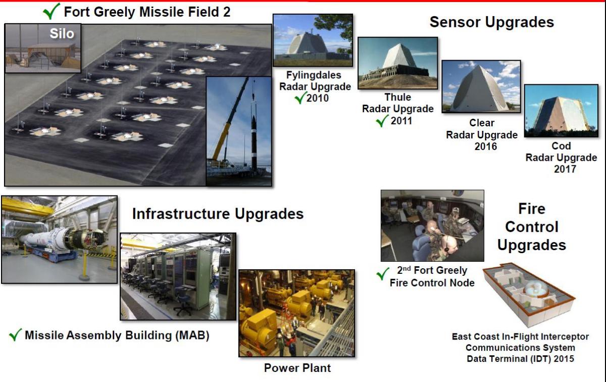 - модернизированные центры коммуникаций, контроля и управления боевыми действиями и центр управления воздушными и коcмическими операциями C2BMC (как часть системы ALTBMD upper верхний уровень многоуровневой ПРО театра военных действий защита от ракет ближнего и среднего радиуса действия);