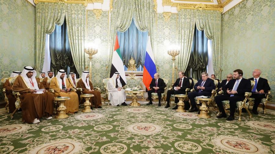Лидеры стран Владимир Путин и Мухаммед бен-Заид Аль Нахайян провели встречу в Кремле