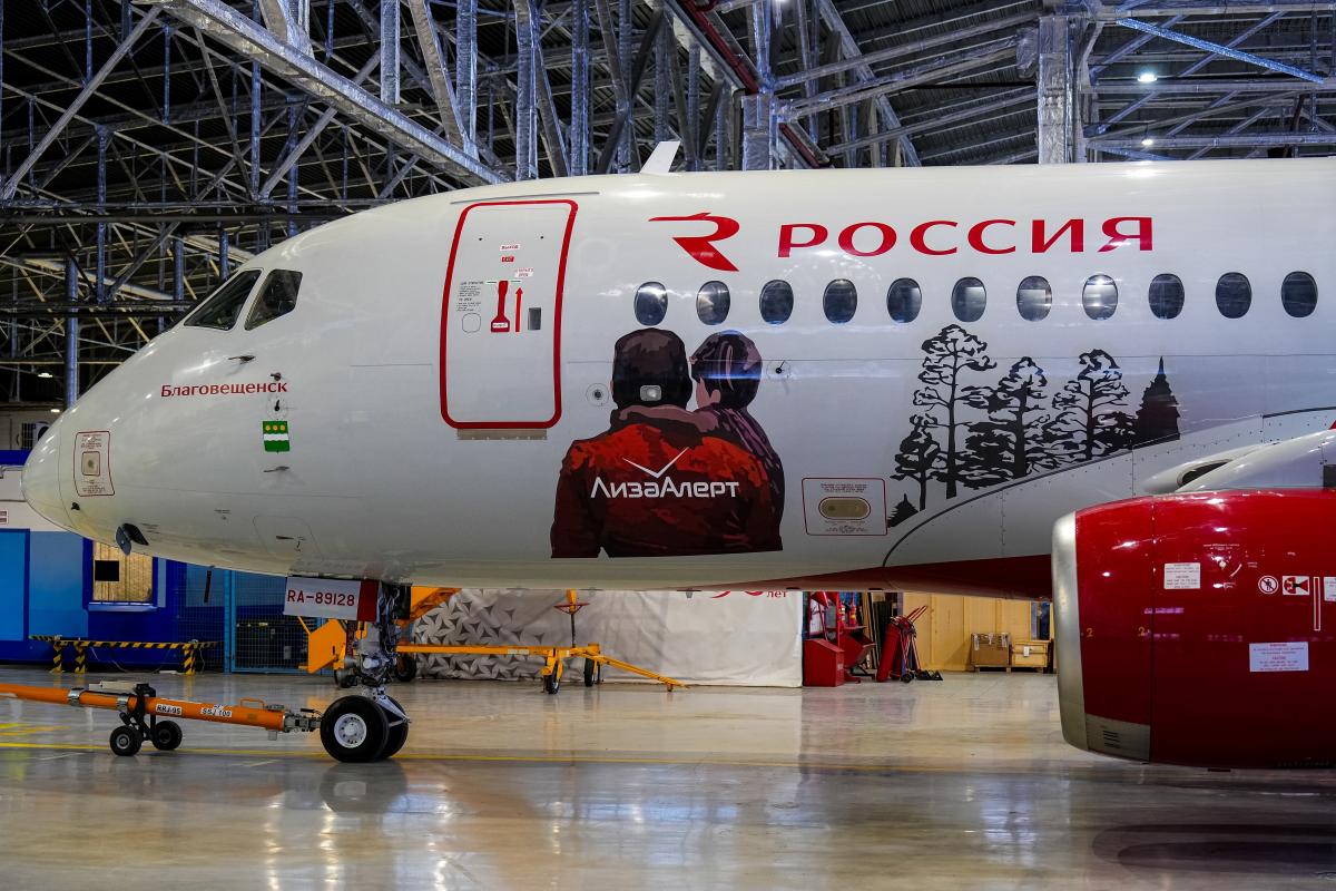 Авиакомпания «Россия» (входит в Группу «Аэрофлот») презентовала в Санкт-Петербурге уникальную тематическую ливрею самолета SSJ-100 (RA-89128) производства ОАК Госкорпорации Ростех. Ливрея посвящена деятельности добровольческого поисково-спасательного отряда «ЛизаАлерт», который занимается поиском пропавших людей по всей России.