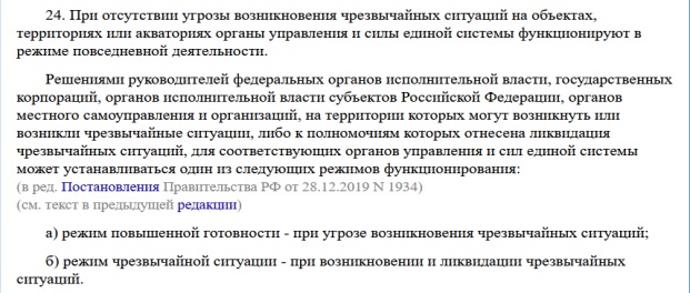 Существует. О таком режиме идет речь в п. 24 Постановления Правительства РФ от 30.12.2003 № 794 «О единой государственной системе предупреждения и ликвидации чрезвычайных ситуаций» (рисунок 7), а также в недавно принятой статье 4.1 федерального закона от 21 декабря 1994 г. № 68-ФЗ «О защите населения и территорий от чрезвычайных ситуаций природного и техногенного характера».